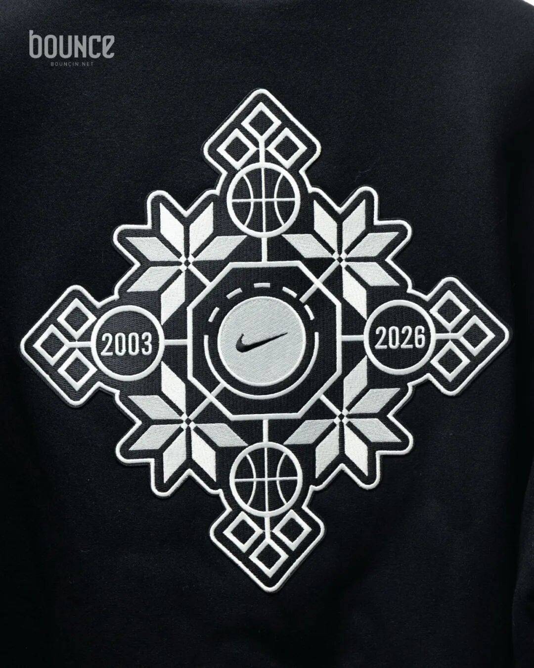 以及一颗定制篮球,篮球以压纹形式低调融入八角花图腾与职业生涯的起迄年,记录其篮球轨迹。(Bounce)