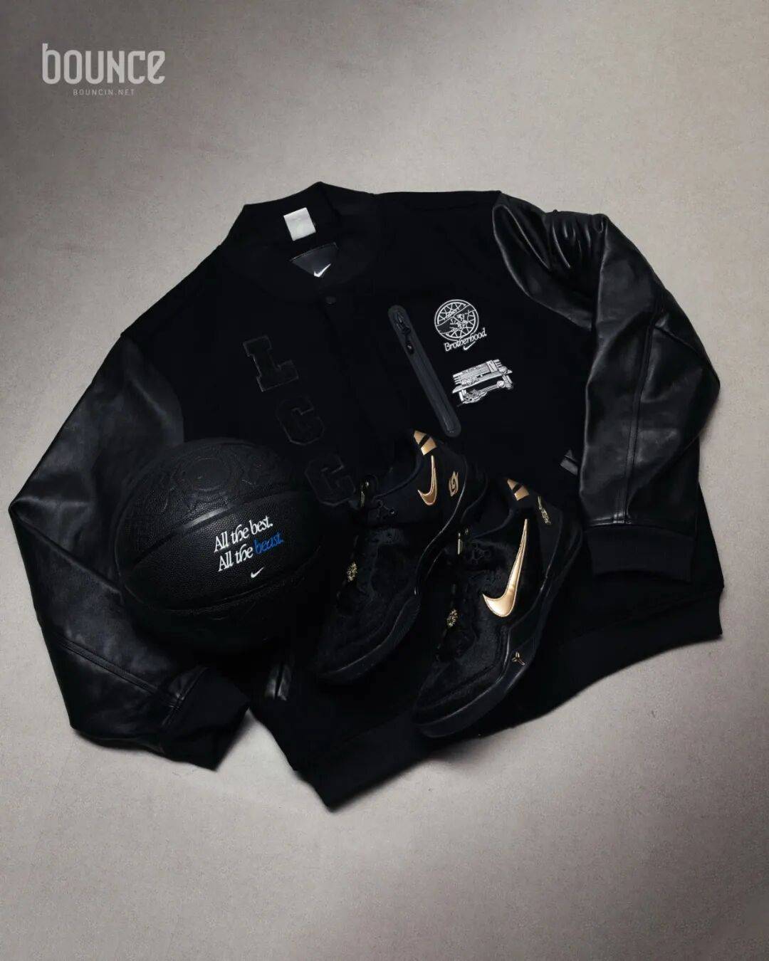 同时还有一件毁灭者夹克,也是有专属的林志杰的英文姓名首字母,左胸两个标志分别象征队友情谊,以及暂别球场的板凳意象,以及陪伴其一路走来的篮球符号,拉链拉开后 Nike 的皮标下则有英文名字的布标;背面更融入阿美族代表性八角花图腾(族语: Falo),彰显其阿美族的文化及血脉根源。