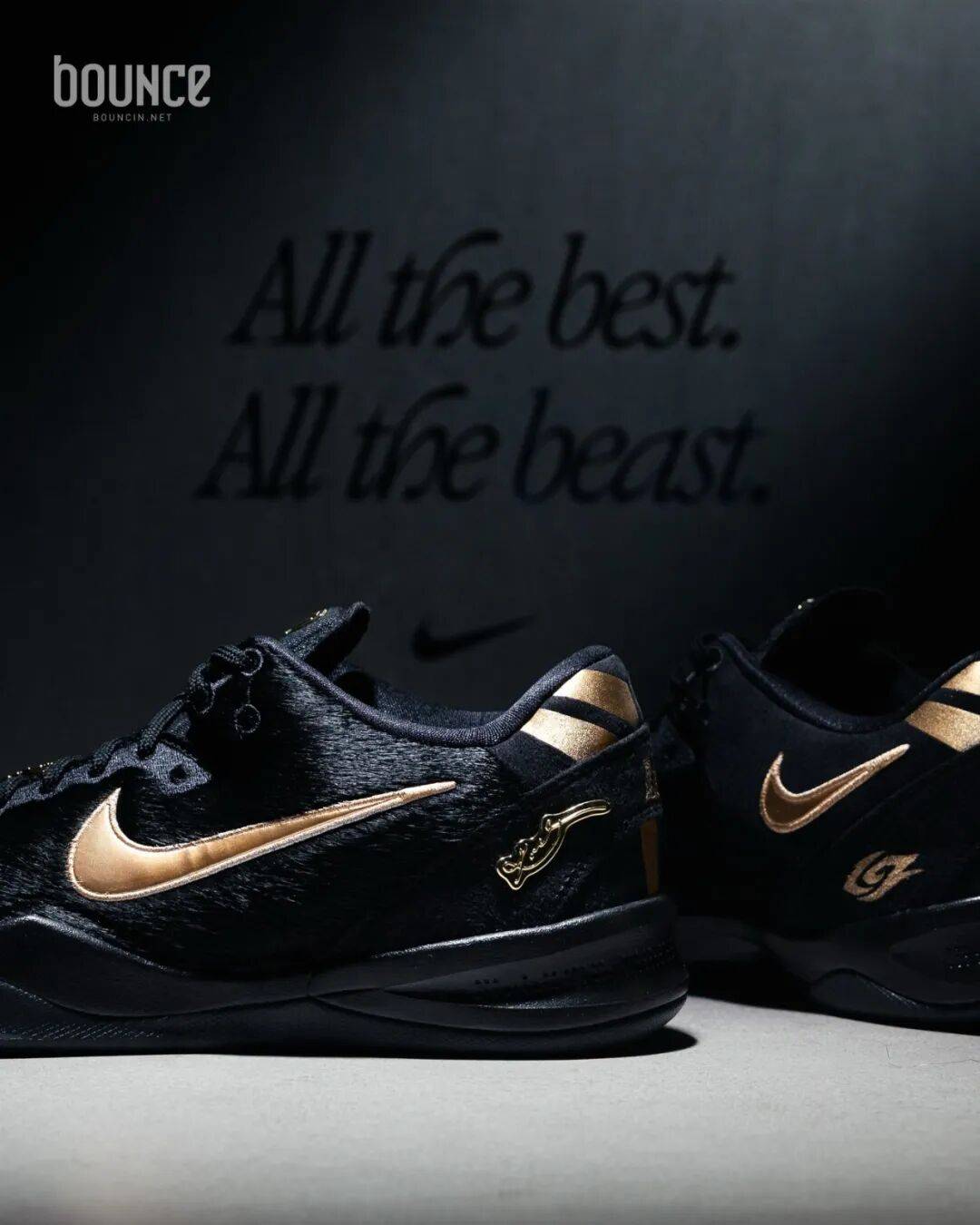 礼盒包含Kobe 8 EXT Protro “Year of the Horse” PE,鞋后跟有林志杰两个球衣号码12及27,还有专属的野兽之眼标志。