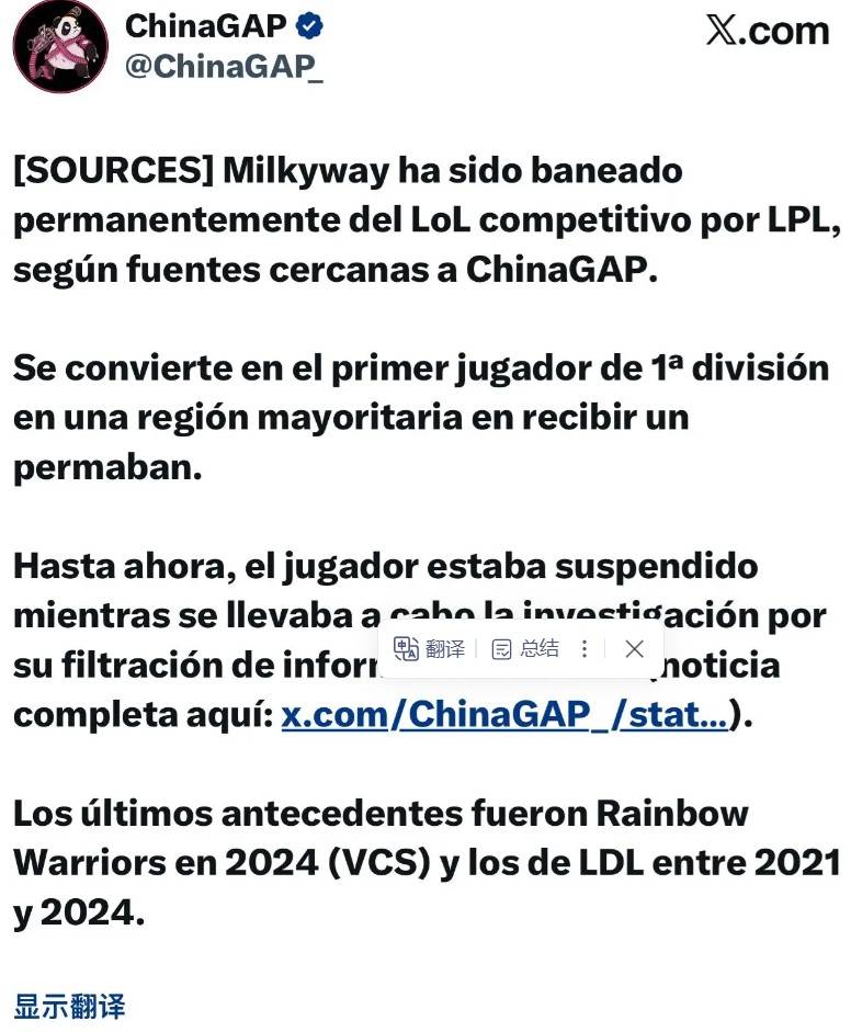 本来以为这个事情可能是银河哥赢了,没想到今天迎来新的爆料,外媒ChinaGAP消息透露,银河哥因为在RNG的信息泄露行为,已经被联盟永久禁赛。