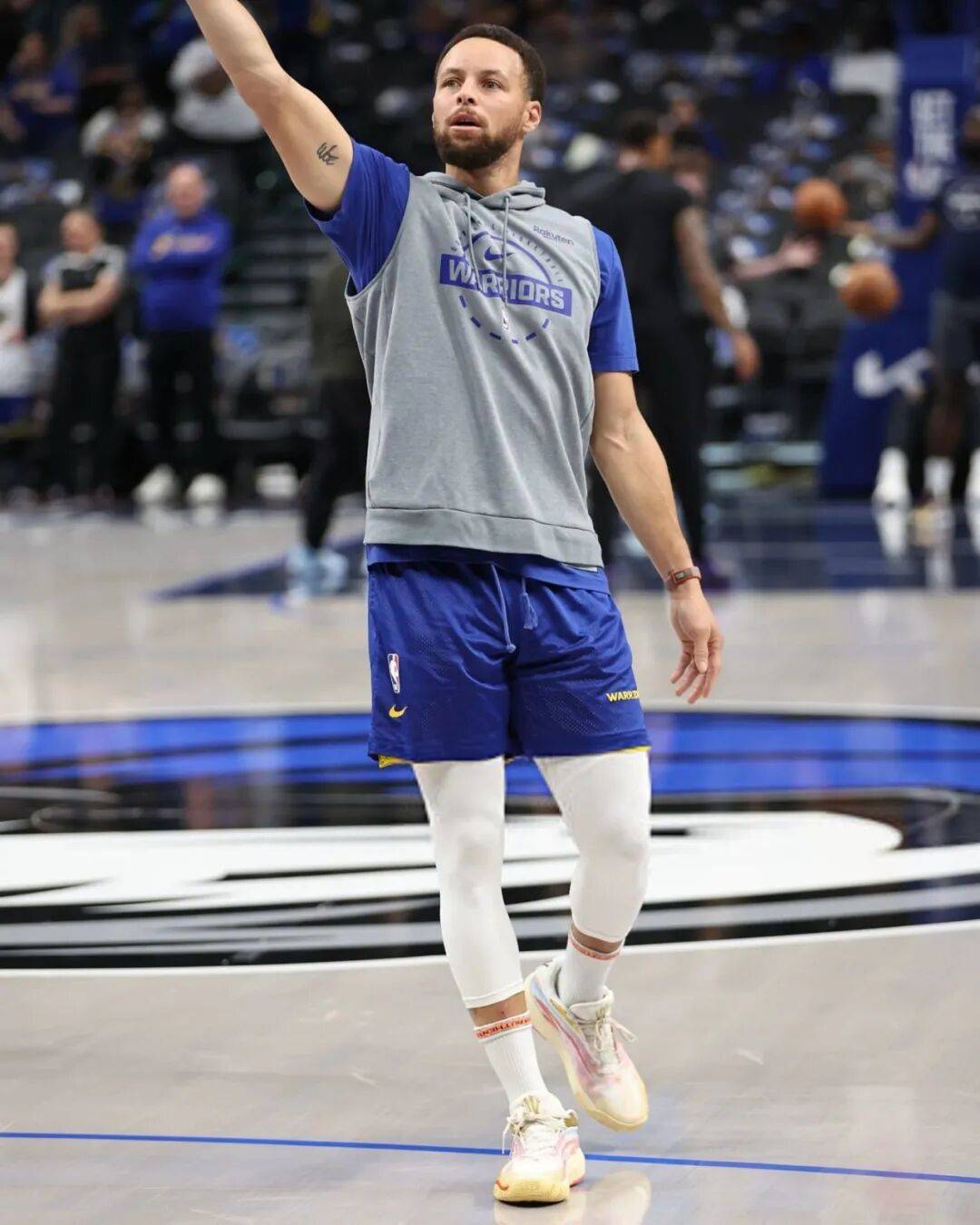 库里今天穿着ANTA Hélà Style入场,比赛中则是穿着了欧文的第三代签名鞋ANTA KAI 3