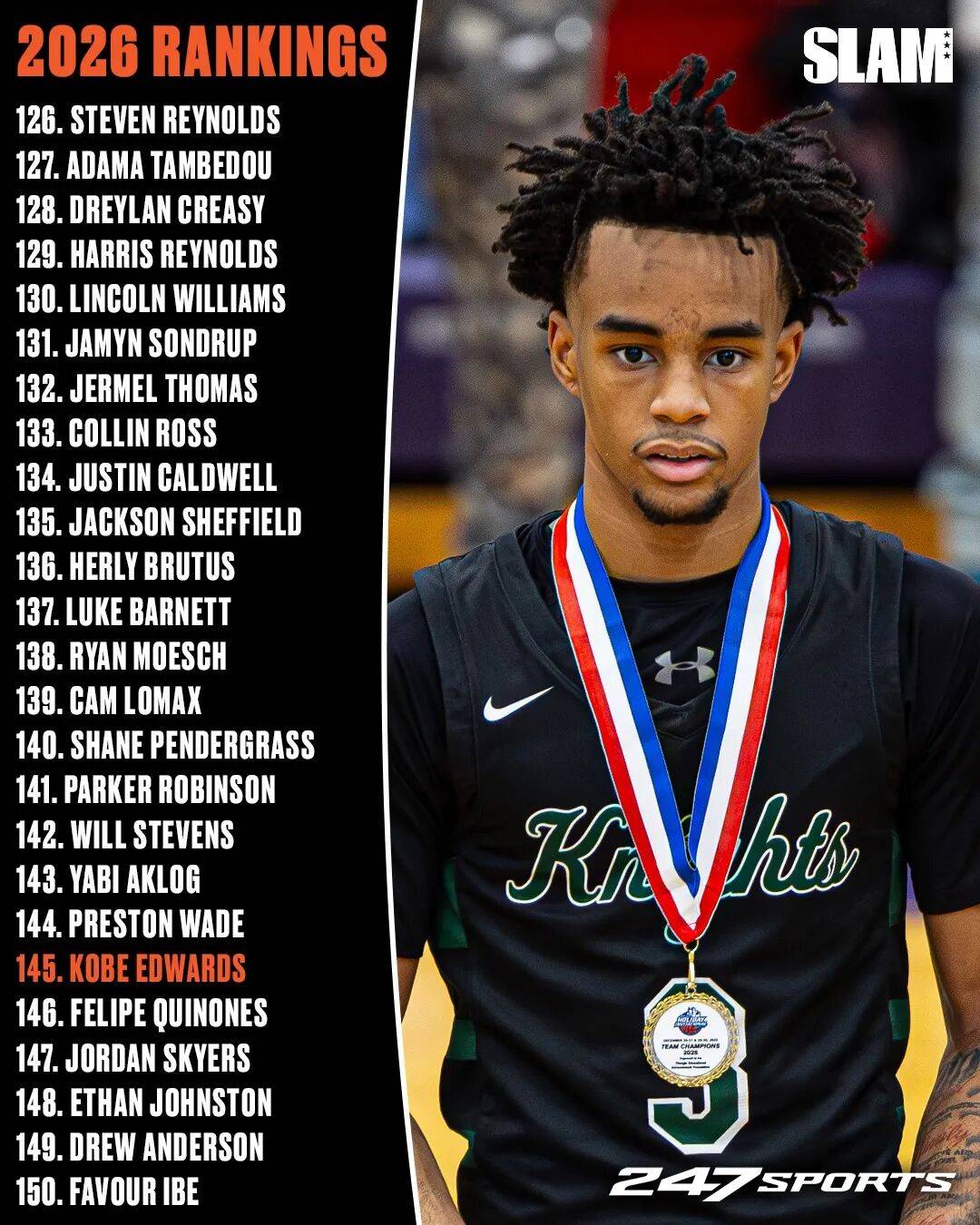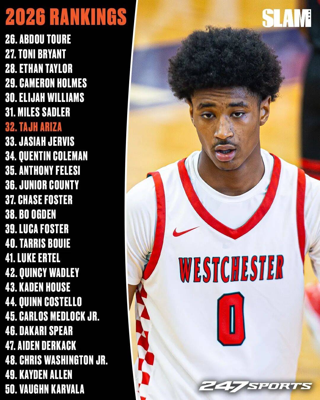 第14的是来过国内打百分的布兰登-麦考伊。然后仔细看了看,里面也有好几位星二代,前NBA盖帽王拉特利夫的双胞胎儿子分别排在17和23,已经承诺南加大。21位的Jaxon Richardson 是前扣篮王理查德森的儿子,魔术理查德森的弟弟。阿里扎的儿子则排在第32位。奥拉朱旺的小儿子Aziz Olajuwon则是排在第64位。