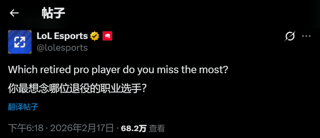 在最近更新的一条推文中,LOL官方提问观众:“你最怀念哪位已退役的职业选手?”对于这个问题,不同赛区的观众自然也有不同的答案。比如LCS赛区的观众往往会提到Bjergsen这位曾效力TSM的传奇中单,而LEC赛区的观众评论区提到最多的就是Perkz与Xpeke两位非常传奇的欧洲中单选手。