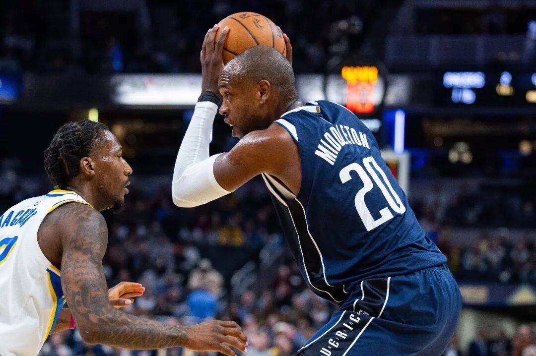来到独行侠,和前主教练基德再次合作,基德也很给机会。在23日独行侠134-130险胜步行者的比赛中,米德尔顿在30分钟的时间里,投篮15中11,三分球5中3,砍下25分7篮板7助攻1抢断的数据。得分是赛季新高、34岁的年龄也成为了独行侠队史自2015年的诺维茨基(37岁)之后最老单场砍下25+5+5的球员。这一不小心,又给他找到一点感觉。