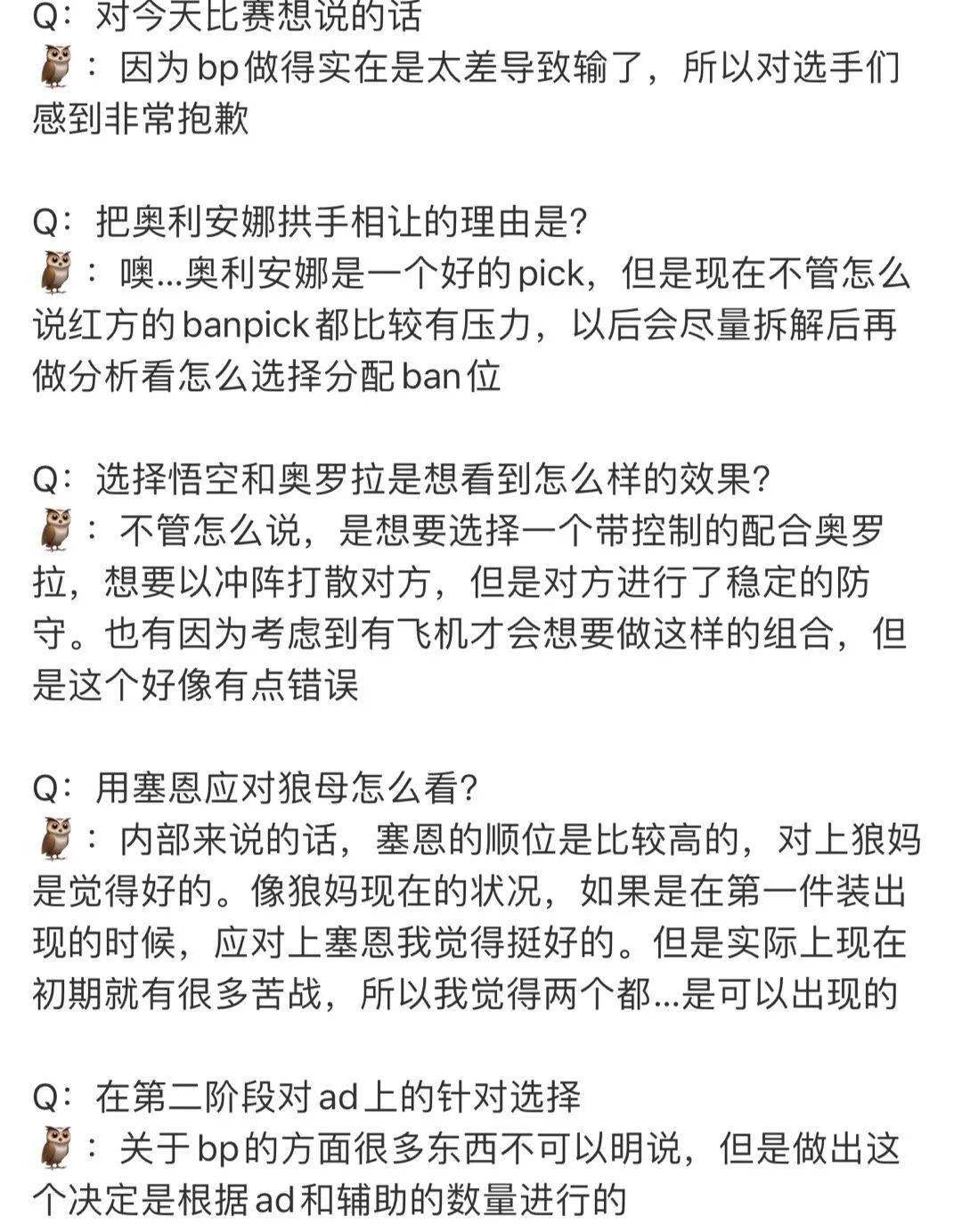 Gumayusi:我认为BP不是特别好,游戏内龙团我们是不是能打得更好一些呢?有这样的遗憾之处。