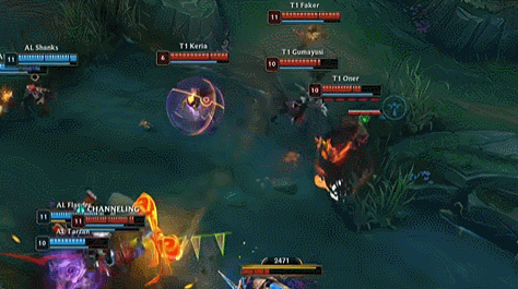由于AL选择拆掉上路一塔,T1是率先落位小龙位置,AL选择挤进来准备接团,Doran一波精彩开团配合岩雀打出大量控制,AL第一时间输出塞恩但打不掉,雷克塞被T1击杀后Faker大招进场留住两人完成击杀,Shanks绕后收掉一人后自己也被Faker闪现留住击杀。