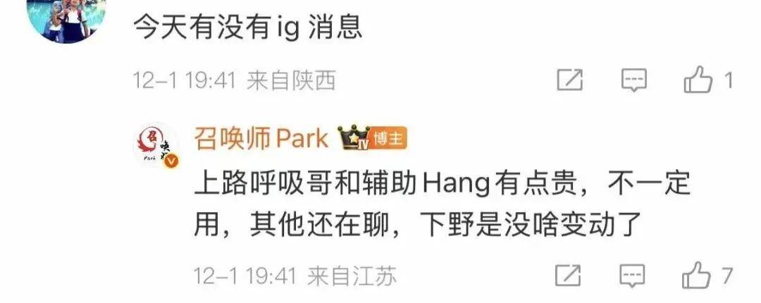 IG粉丝都关心未来的进展,近期LPL知名爆料人表示,IG下野没啥变动,上路呼吸哥和辅助Hang有点贵,不一定能用。这更加剧了IG没钱的怀疑,难怪IG转会期如此拉胯了。